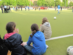 Wir setzen uns dafür ein, dass alle Mädchen und Frau die gleichen Chancen wie Jungen und Männer haben. Wir wollen bei diesem Fußballfest, das eigentlich etwas Fröhliches ist, auch darauf hinweisen, wie Frauen und Mädchen in vielen Ländern keine Bewegungsfreiheit haben, und keinen Sport machen dürfen.