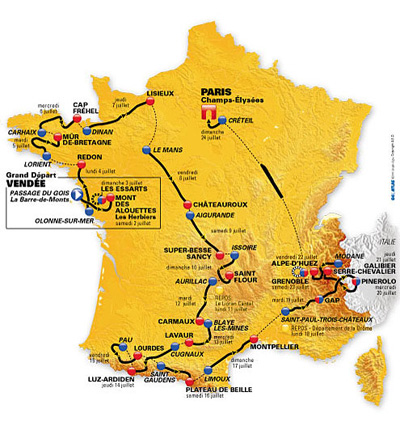 Von Samstag, 2. Juli bis Sonntag, 24. Juli findet die 98. Tour de France statt. Sie umfasst 21 Etappen mit einer Gesamtlänge von 3.430,5 Kilometern.