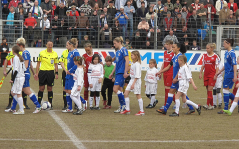 Les joueuses de Turbine Potsdam pénètrent sur le terrain, accompagnées des futurs espoirs...