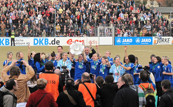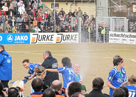 À la fin du match, l'ambiance était à la fête, les footballeuses de Potsdam ayant gagné 3 à 0 et remportant ainsi pour la troisième fois consécutive le titre de championnes d'Allemagne.