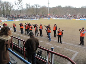 A notre gauche, une rangée de reporters sportifs et pas moins de photographes !