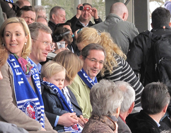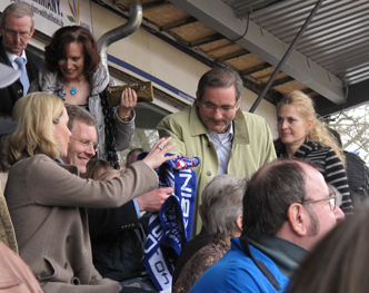 À son cou, une écharpe de supporter des Turbines offert par le ministre-président du Brandebourg Matthias Platzeck.