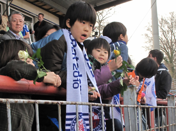 Avant le début du match, il y a eu une minute de silence pour les victimes du tremblement de terre et du tsunami au Japon. 7.000 personnes debout et pas de bruit, c'est vraiment impressionnant !