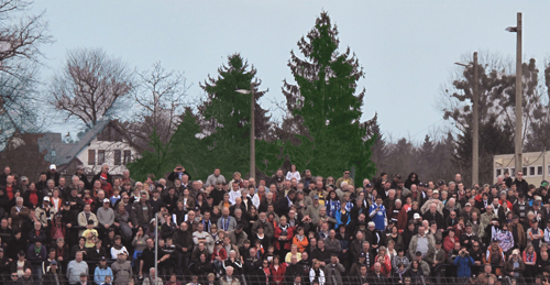 À notre droite, un énorme groupe de supporters