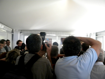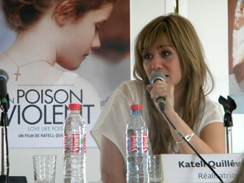 Après la séance, bousculade à la conférence de presse. Un Poison violent est le premier long métrage de la jeune réalisatrice Katell Quillévéré. Presque tous les acteurs sont présents, et le public applaudit beaucoup.