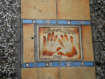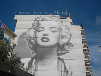 Le cinéma est présent dans toute la ville. Là, un immense portrait de Marilyn Monroe, plus loin les dalles de l'allée des stars, qui portent les empreintes de mains des réalisateurs et des acteurs qui ont séjourné à Cannes.