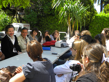Le lendemain, assis sous un oranger, on interviewe - avec un groupe de Lyons - le réalisateur Jérôme Enrico (La Reine Margot, l'Origine du monde) et son producteur Bruno Hodebert.