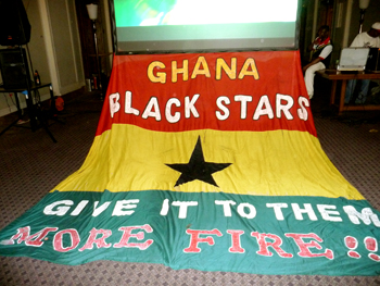 Die große Flagge ist ausgerollt. Es lebe die Black Stars!