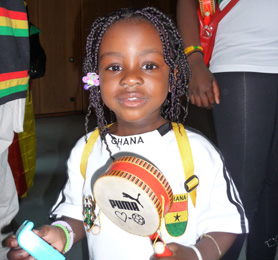 Mädchen und Jungs haben sich in den Farben von Ghana hübsch gemacht..