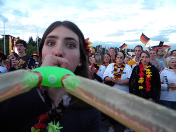 Das Spiel ist aus, das Feiern geht weiter. Die Vuvuzelas gehören hier auch zum Fest.