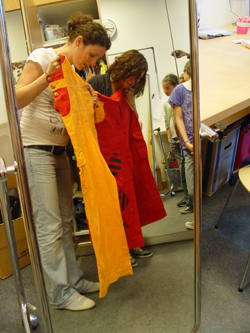 Zum Schluss durften wir auch noch einen Blick in den Raum werfen, in dem die ganzen Kostüme sind. Aber so viele, wie wir dachten, gab es gar nicht. Beret erklärte uns warum: