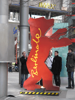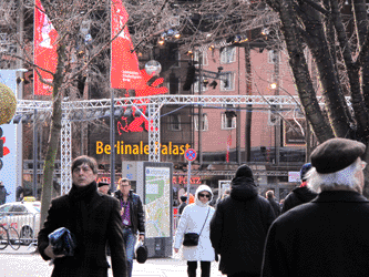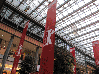 Ici, c'est le coeur de la Berlinale : la Potsdamer Platz. Et qu'est-ce qu'on voit partout ?