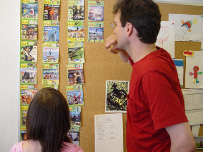 Der Grand méchant loup hat seinen Besuch in Paris genutzt, um Géo Ado zu besuchen, den Cousin des deutschen Monatsmagazins GEOlino. In den Büros war es ganz still, weil es Hochsommer war, man hörte nur die Computer. Es war viel Platz in dem Raum, wo wir Johannes Werle getroffen haben und wir konnten sogar die Kirche Sacré-Coeur sehen.