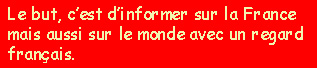 Si on prend une définition classique, c'est plutôt une radio faite pour s'informer, avec des informations toutes les demi-heures, des magazines sérieux et politiques. Mais il y a aussi des émissions culturelles, sur l'école, sur la musique ... Le but, c'est d'informer les auditeurs sur la France, mais aussi sur le monde avec un regard français.