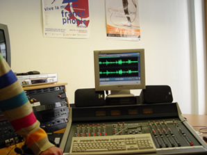 <- Maintenant, on retravaille le son sur ordinateur avec des logiciels spéciaux (studio de rfi à Berlin)