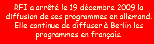 Ce sont les initiales de Radio France Internationale, donc c'est la radio française destinée à l'étranger. C'est une radio écoutée à la fois par les Français qui habitent à l'étranger et par des gens qui comprennent le français.