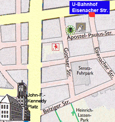 Nous prenons le métro ici, à la station "Eisenacher Straße"...