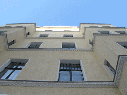 Es ist ein schönes gelbes Haus um 1900 gebaut.