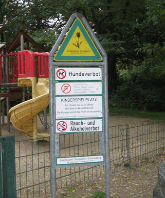Der Eingang für die Kleineren mit den Verbotsschildern.